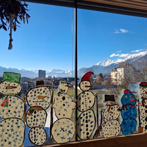 Schneemänner von Linda Trinker 03. Dezember 2025 3a Die Schülerinnen und Schüler der 3a gestalteten passend zum Wintereinbruch in Tirol eine lebensgroße Schneemannfamilie. Immer wieder erstaunlich, wie sich die Charaktere der Kinder auch in deren Kunstwerken widerspiegeln :)Ein Symbol für Gemeinschaft und Vielfältigkeit.
